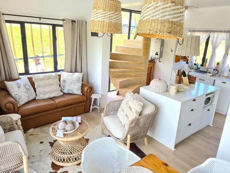 在以白色為主題的房屋中,未上漆的木材在室內裝飾中使用會變得突出且特別漂亮,這種結構中打造了生態和諧的房屋主題。