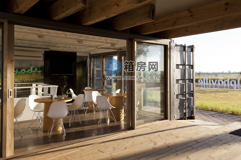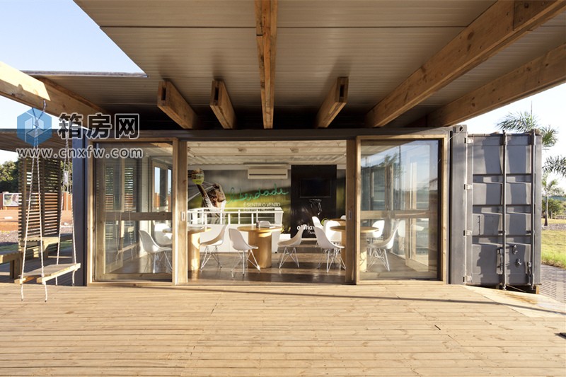房地產項目Alphaville的售樓部,為環保集裝箱和木材打造的新型建筑。清新簡約的設計風格,吸引不少當地群眾前來咨詢及體驗。集裝箱模塊式建筑的靈活運用,十分適合像售樓部這種既是臨時性而又要求有一定觀賞性的建筑。而且,售樓部以后還可以發揮它的延續性,便捷地進行遷移、循環使用。