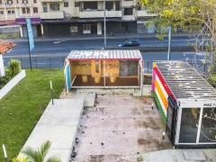 這是由兩個超寬的40尺箱體、兩個標準的40尺箱體以及鋼架構組合搭建而成,一只超寬箱體以及一只標準箱前后安放拼接組成一個整體,兩組拼接箱體分別放置在兩旁,中[查看詳情]