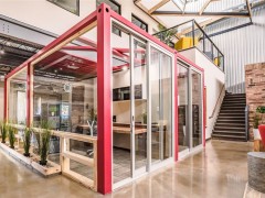 集裝箱作為一種靈活的建筑材料,擁有多種組建方式。你可以整個堆疊使用,也可以切割、拆解使用。當(dāng)加上了再生木材、玻璃、鋼材、顏色、紋理和外露天花板的組合之后,便成了一個多維元素和現(xiàn)代時尚的新型建筑物。[查看詳情]