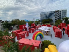 這是由兩個(gè)超寬的40尺箱體、兩個(gè)標(biāo)準(zhǔn)的40尺箱體以及鋼架構(gòu)組合搭建而成,一只超寬箱體以及一只標(biāo)準(zhǔn)箱前后安放拼接組成一個(gè)整體,兩組拼接箱體分別放置在兩旁,中[查看詳情]