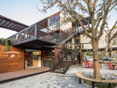 這個集裝箱建筑建在一個4250平方英尺的開放式地塊上,它采用炭黑色裝飾,刺破了樸實的實木色調,體現了箱體結構的新穎性。餐廳沿著東部邊緣的入口通道向北經過園[查看詳情]