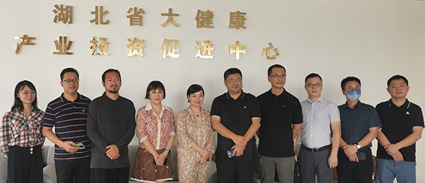 博客斯董事長劉永波先生(左二)與企業家共同參觀湖北省大健康產業投資促進中心