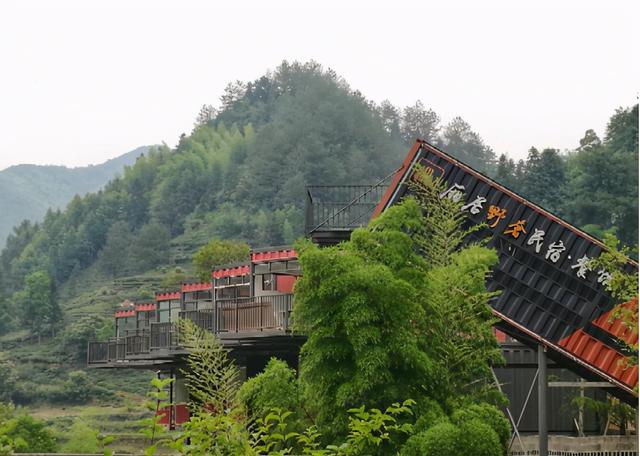 桃花源記的現(xiàn)代版,在民宿眾多的大山之中給人耳目一新的感覺(jué)。然而集裝箱的風(fēng)格,使整個(gè)民宿很有設(shè)計(jì)感又不乏古風(fēng)。