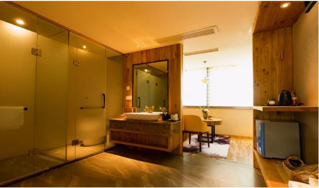 房間的露臺(tái)有玻璃棧道的感覺(jué),正對(duì)著外面的大山和流水的落地玻璃窗,滿眼的綠色和大山。老板很有創(chuàng)意,利用集裝箱和徽文化的完美結(jié)合,打造了這家集裝箱民宿,住進(jìn)去完全感受不到是住在集裝箱里。當(dāng)徽式禪意遇上了輕奢工業(yè)風(fēng),集裝箱的巧妙介入,使得整體的觀賞性和功能性達(dá)到了一個(gè)絕佳平衡,住這樣的居所,才叫銷(xiāo)魂。