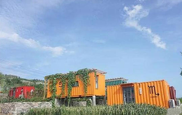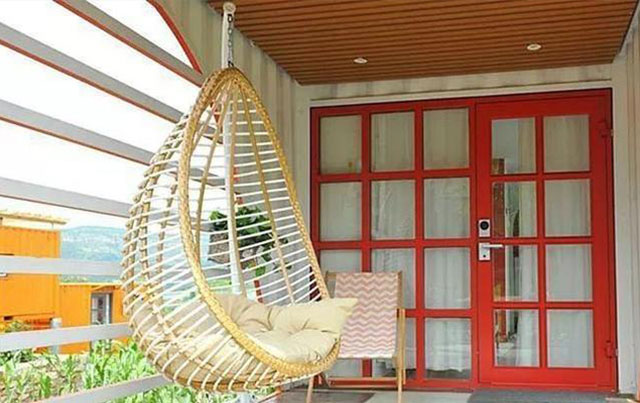 這是柜族部落的夏景,藍色的天、葉子和橙色的天蝎座集裝箱組合在一起,真是賞心悅目。這樣的景,很容易就讓人生出滿滿的喜歡。如果非要說一點美中不足的話,那大概就是冬天取暖的方式是空調而不是地暖了吧,可一點也不影響夏天的體驗~