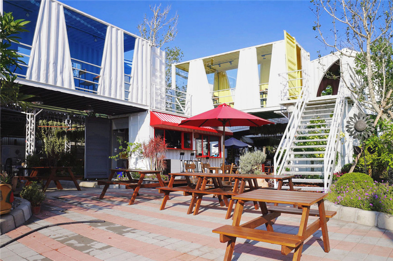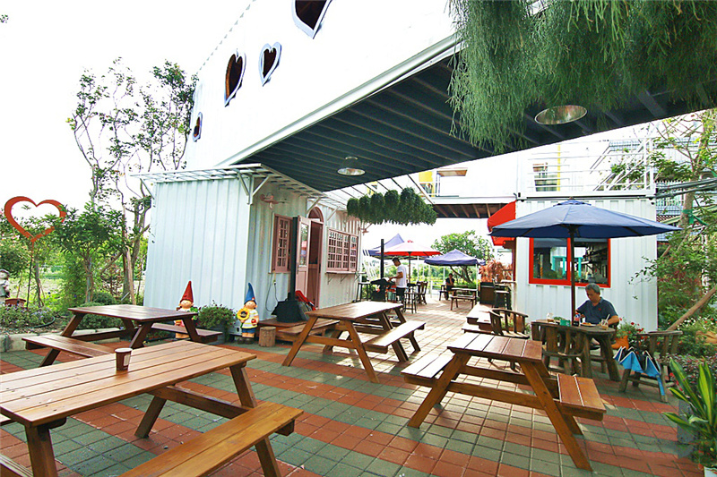 位于臺灣彰化縣的【綠野仙蹤貨櫃文創(chuàng)】是本次的主角,這里的集裝箱建筑外觀皆以白色為主,周邊種植這許多點綴生機(jī)的綠植。為了區(qū)分園區(qū)內(nèi)的不同店家,每一間店家的外面都會漆上一點不同的顏色。