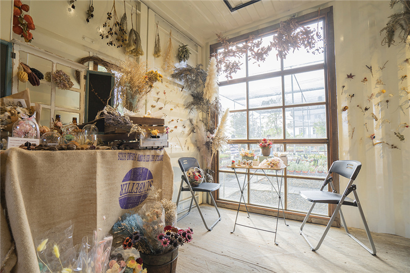 在這條公路上有非常多可以逛的店家,唯獨這家比較特別,用集裝箱搭建起來的植物售賣商店,名叫綠果庭院。綠果庭院是多肉控的天堂,利用集裝箱房和木質材料營造了一個獨特的休閑空間,戶外懷舊窗戶的拼接,盡顯復古風,讓整體建筑看起來不不單調。