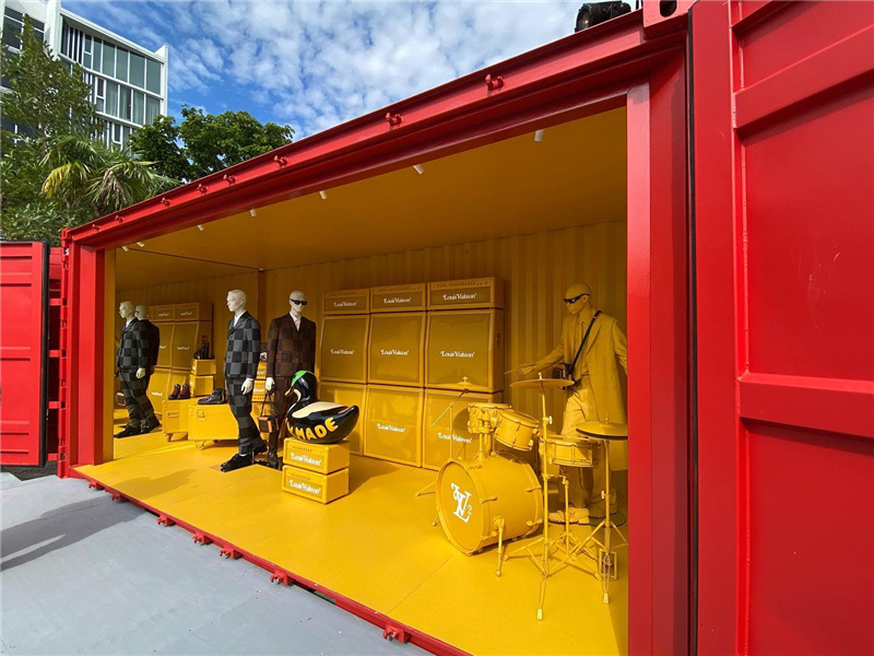 為了展示品牌2021年的春夏男裝,路易威登(Louis Vuitton)在邁阿密搭建了一個(gè)宏偉的集裝箱展廳,其中包括維吉爾·阿布洛(Virgil Abloh)的設(shè)計(jì)。該品牌的創(chuàng)造性方法一直以來(lái)都備受稱(chēng)贊,選用集裝箱建造服飾展柜將能使容器的工作得到真正的突破。