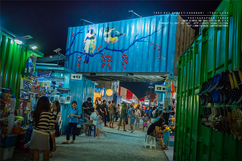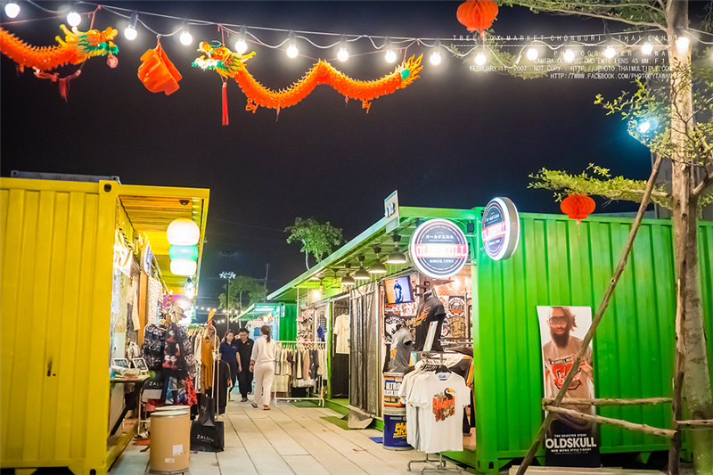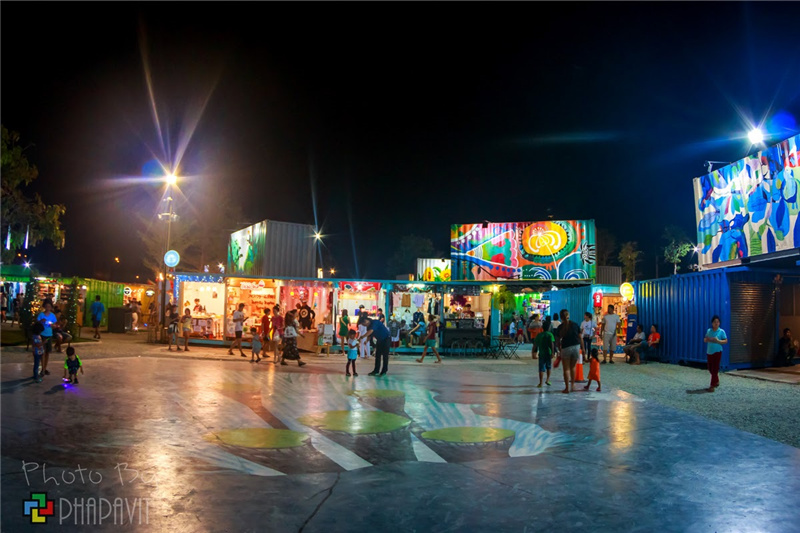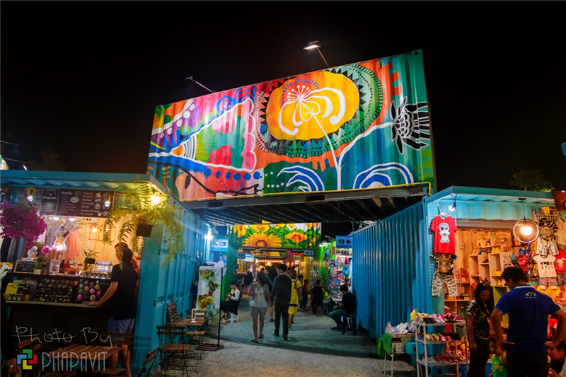 這是一個由集裝箱打造的商業街,在這里,相當于進入了一個大型的涂鴉藝術跳蚤市場,有各種各樣功能的集裝箱商店,滿足你吃喝玩樂的各種需求。市場的大門口由三個集裝箱堆疊而成,嵌上醒目的招牌大字和涂鴉著樹的圖案,從這里開始就要進到集裝箱涂鴉藝術世界了哦~白天金屬感爆棚,燈光夜景則十分夢幻!