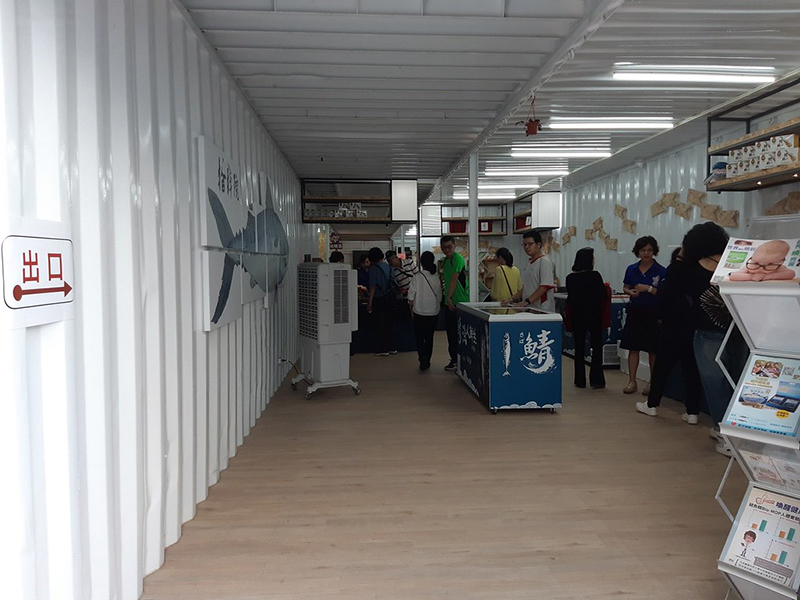 這個(gè)文創(chuàng)園名叫拾粹院,但其實(shí)它更傾向于一個(gè)鯖魚(yú)制品銷售點(diǎn),從園區(qū)入口的玩偶到集裝箱內(nèi)的掛飾、擺放的商品,都是鯖魚(yú)和其相關(guān)食制品,比如鯖粹精、鯖魚(yú)罐頭、鯖沙魚(yú)等等。游客在這里既能拍照打卡,也能購(gòu)買(mǎi)到美味的食制品。