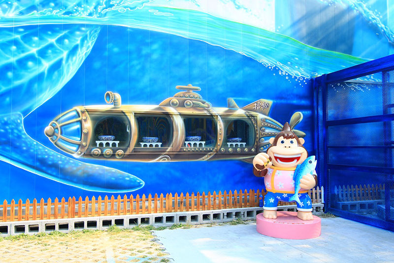 全臺(tái)灣最高的3D彩繪集裝箱在嘉義市,由知名3D彩繪藝術(shù)家圖龍所創(chuàng)作。就是你現(xiàn)在看到的這個(gè)巨型金剛,其身高高達(dá)9米,由4層集裝箱不規(guī)則堆疊而成,一旁還有皇宮般的海底世界,加長(zhǎng)加寬,打造了令人震撼的3D效果,看到的路人紛紛拍照上傳社交平臺(tái),使它一躍成為周邊游的新亮點(diǎn)。