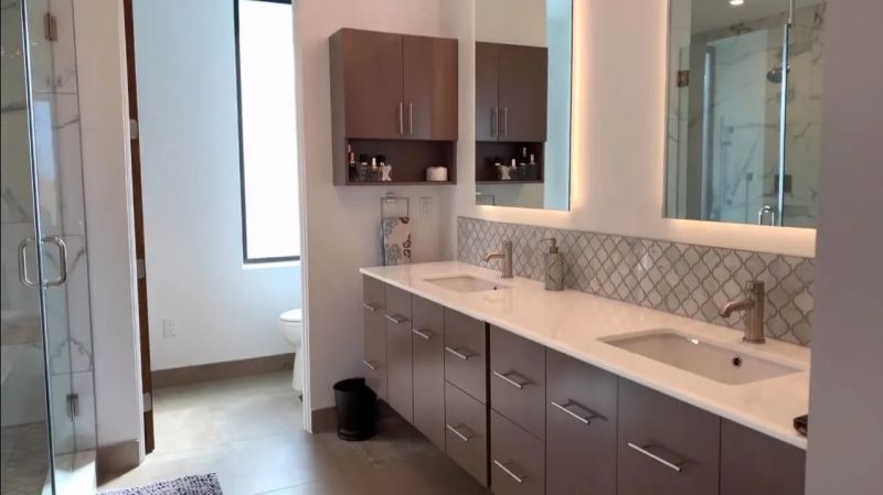 除了用于房屋外墻的面板外,室內(nèi)的地板和墻壁經(jīng)過拋光處理使空間反射的光線更加明亮。該住宅不僅擁有大面積的戶外露臺和客廳,就連臥室和衛(wèi)浴間的設(shè)計也十分寬敞。不同于平時單個集裝箱單元緊湊的布局,這里的臥室甚至可以布局得如客廳般寬敞,配套舒適的沙發(fā),衛(wèi)浴間的洗漱臺也能設(shè)置兩個以上。