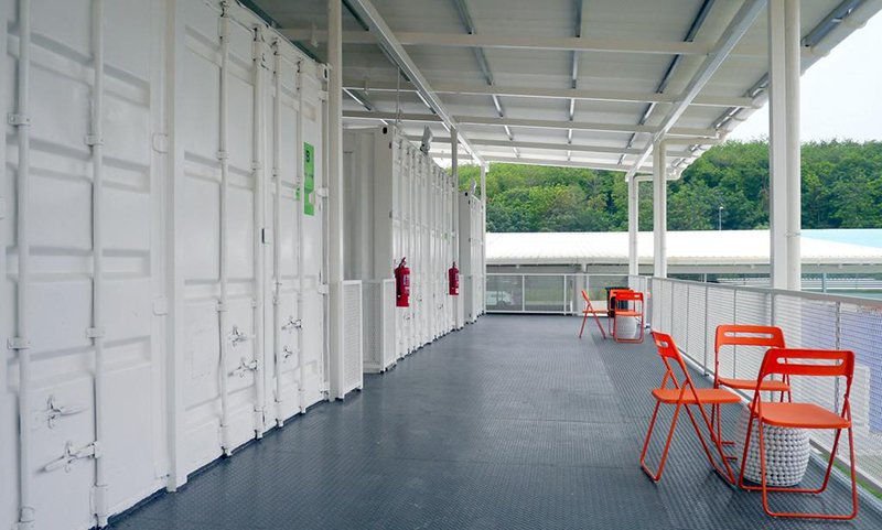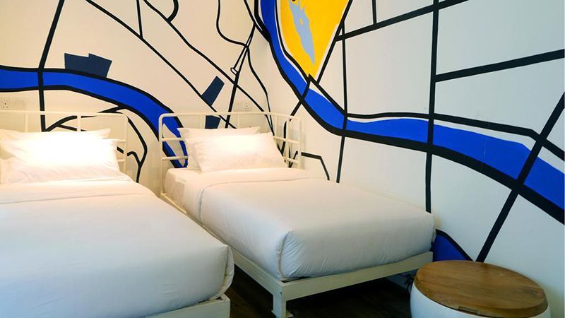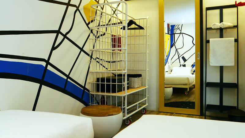這些房間是從舊的集裝箱中發展出來的,反映了該地區的創新和高科技。白色涂層的集裝箱用作住宿房間,彩色涂層的集裝箱則是餐廳。集裝箱住宿都是二層設計,提高土地利用率,同時為走廊添加一些休閑區,再加上房號標志的涂鴉,使得原本單調的住宅多了一些俏皮。