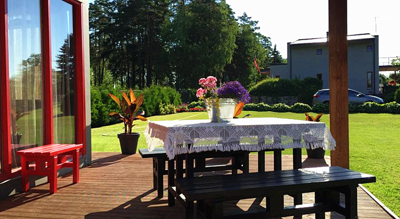 最讓人為之欣賞的是屋外的露臺,幾張木桌椅放置在墊高的木平臺,遮陽布安裝在頂部避免太陽直曬,各個角落放上各種盆栽,很是養(yǎng)眼,閑來沒事在屋外坐著欣賞周圍的景色也不失為一種享受。