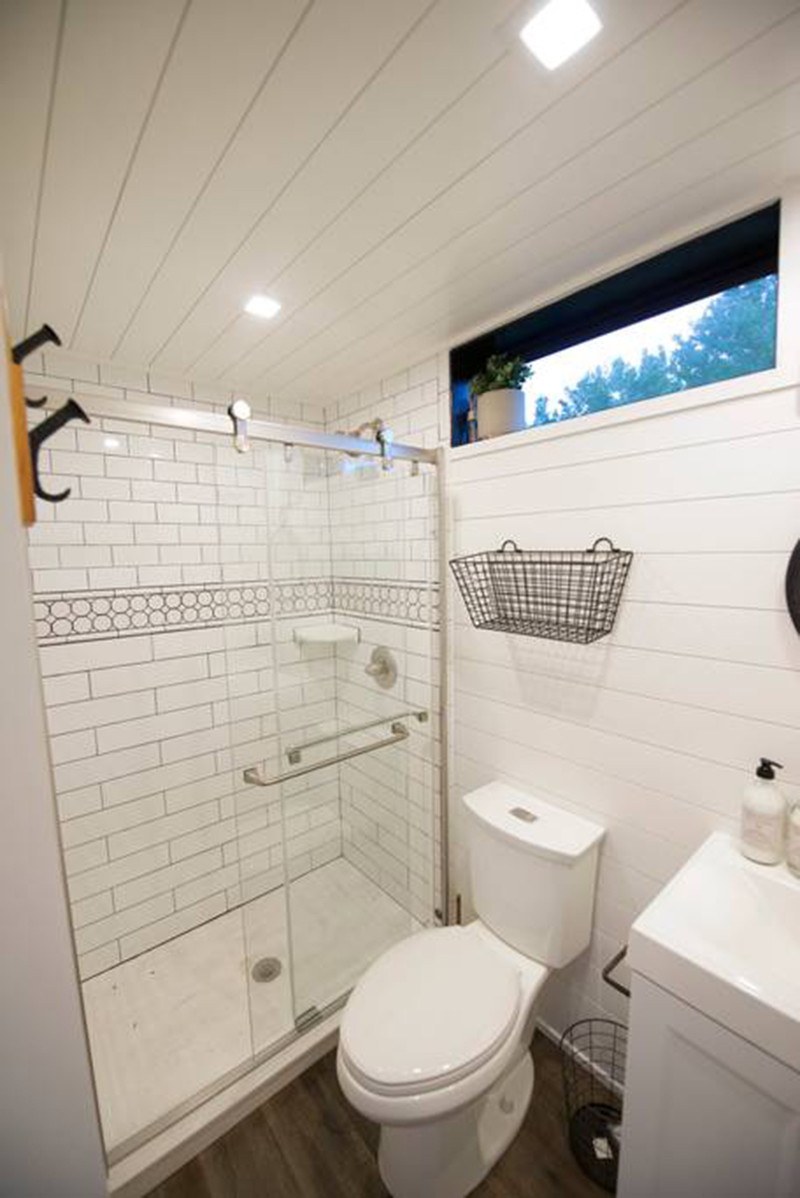 每個(gè)樓層均設(shè)有全尺寸定制的瓷磚淋浴間和寬敞的浴室,為住戶提供了一個(gè)完整的沐浴體驗(yàn),創(chuàng)造出一個(gè)完美的集裝箱住宅。