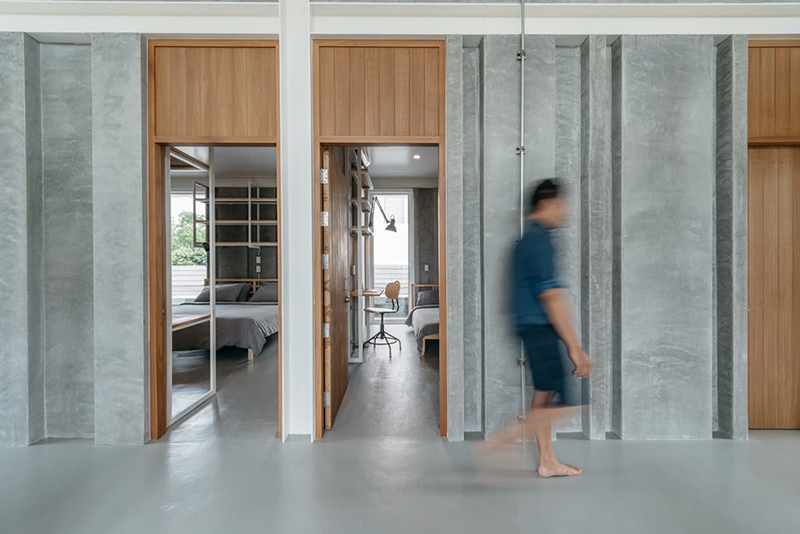 此外,建筑師還在從地板到天花板的位置鉆了一個垂直的大開口,作為住宅的門和窗,為自然采光和開放通風打造有利條件,即使在白天也不需要開燈光電源,使房屋通風,減少熱量。對于聲音管理,隔熱鑲板方法有助于防止噪音。