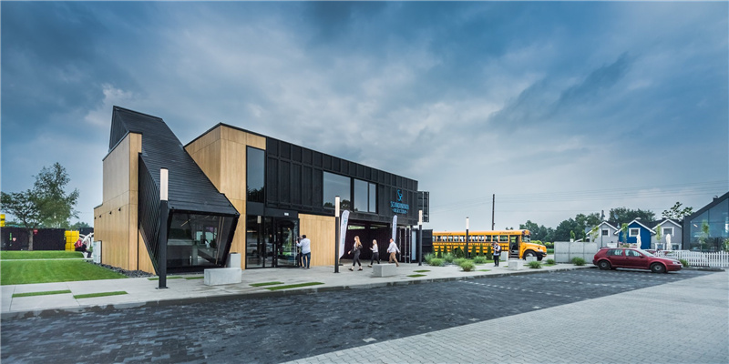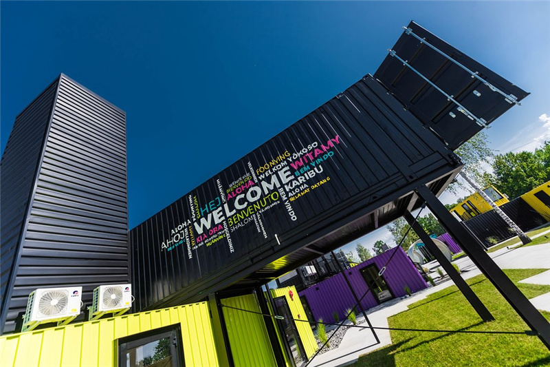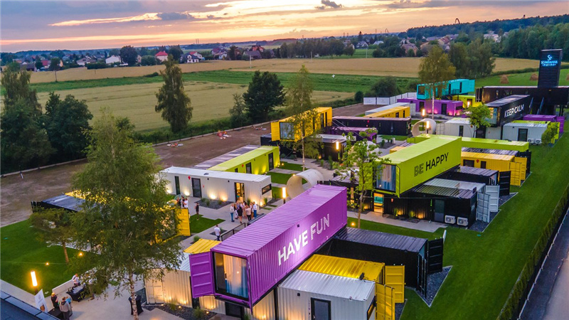 以集裝箱架構開發的住宿項目通常容易吸引人們的青睞,今天說到的是一個由集裝箱模塊化建筑打造的主題酒店,該酒店坐落在一個池塘旁,靠近自然保護區,也靠近大型游樂園。