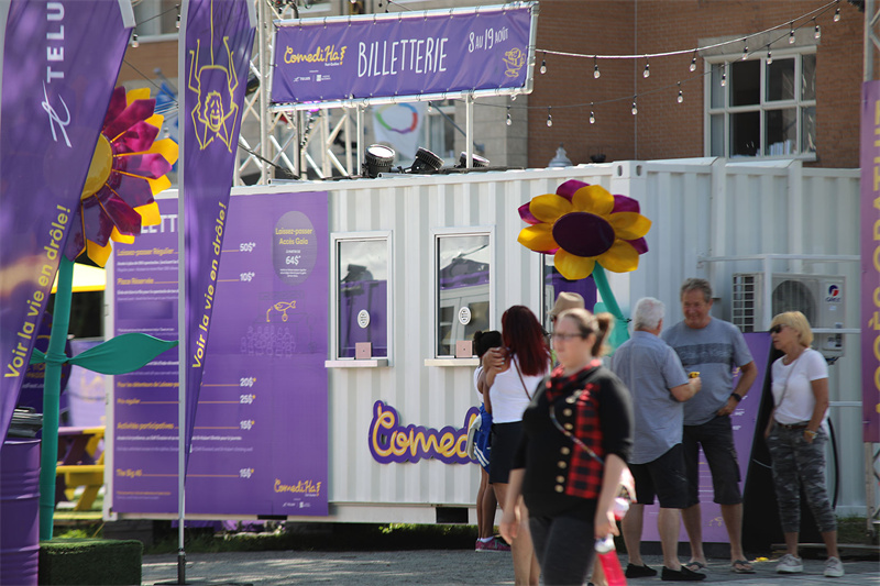 這是國外的一個喜劇節,為了能響應節日的主題,現場需要一個可以在露天搭建的劇院裝置,用以出演或者播放戲劇。為此,服務商為其提供了一個移動架構的概念。用七個集裝箱打造了一個大型的露天影院,隨到隨建,配備可拆卸的帆布屋頂,成為世界上第一個使用回收集裝箱建造的移動影院。