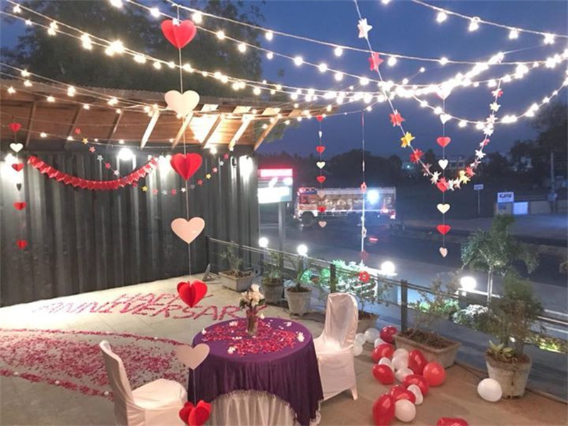 兩個較小的集裝箱沿較長邊緣平行排列,以形成位于用餐空間側(cè)面的廚房。一個小集裝箱垂直堆放在它們的頂部,突出并限定了餐廳的主要入口。