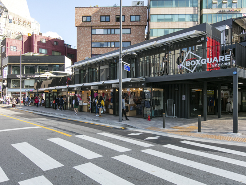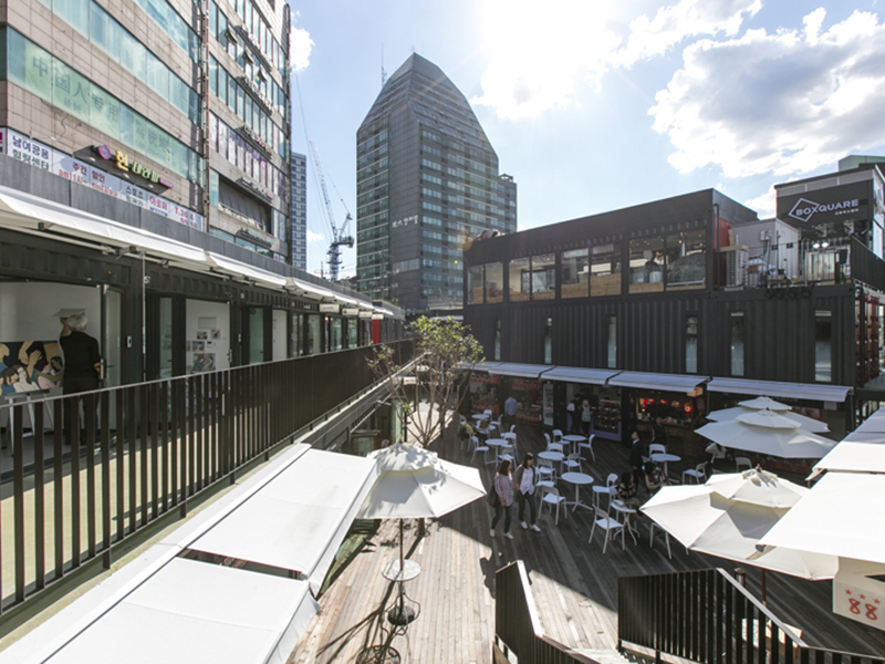 這個“鐵箱子”這是首爾的一個新景點,是建筑界的“網紅”——集裝箱商場,地點正正坐落于梨大正門前購物街盡頭,位置非常方便,沿著購物街一路掃貨之后便可以到達,開啟又一輪血拼,果然是女人都愛的地方啊!難怪這時候歐巴也要爭寵呢!