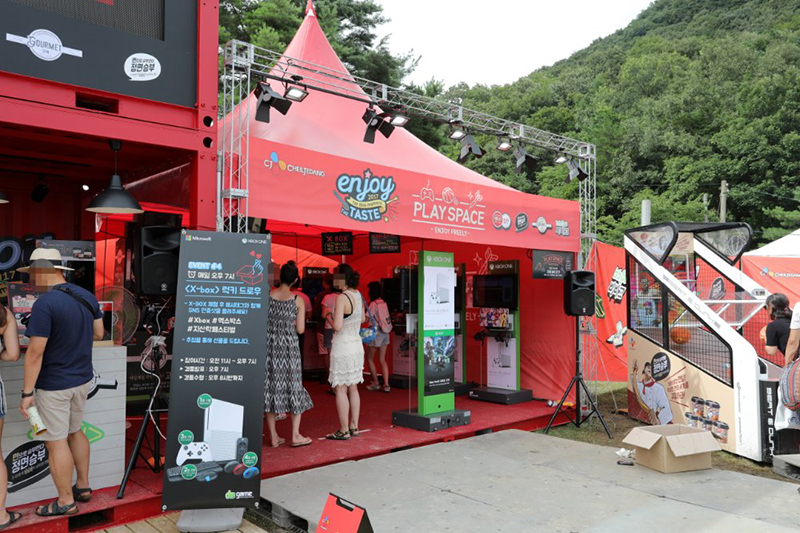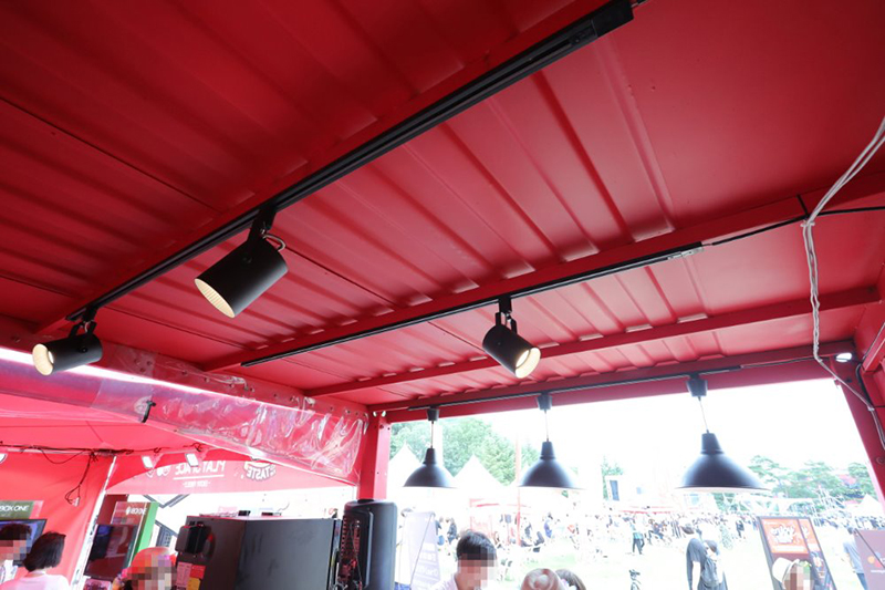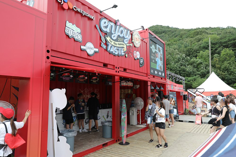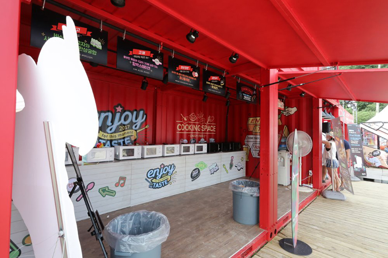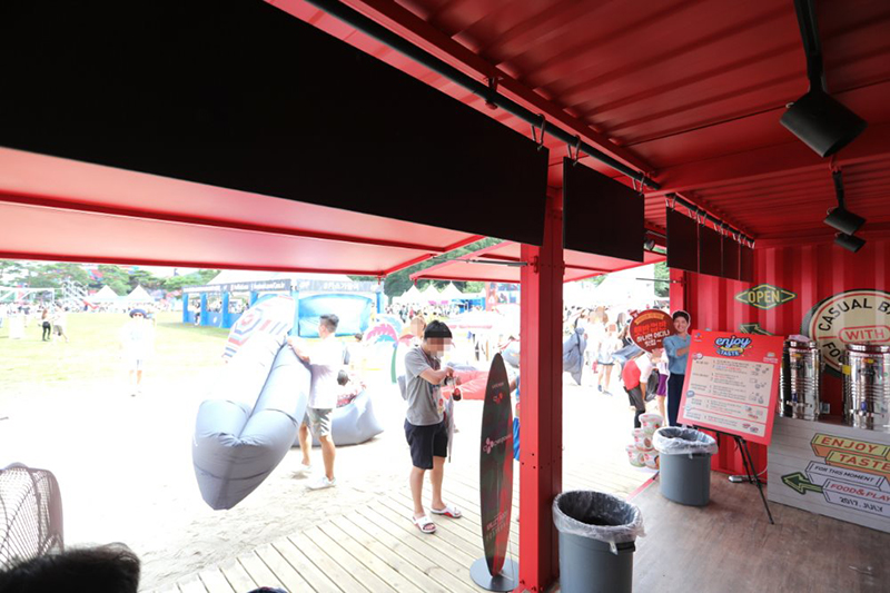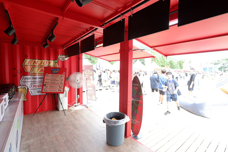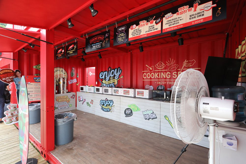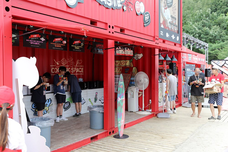 為了在節(jié)日中更好地提供各種配套生活服務(wù),韓國一家食品公司在現(xiàn)場經(jīng)營了一個(gè)集裝箱攤位,以便可以在同一個(gè)空間內(nèi)解決餐飲和娛樂需求。
