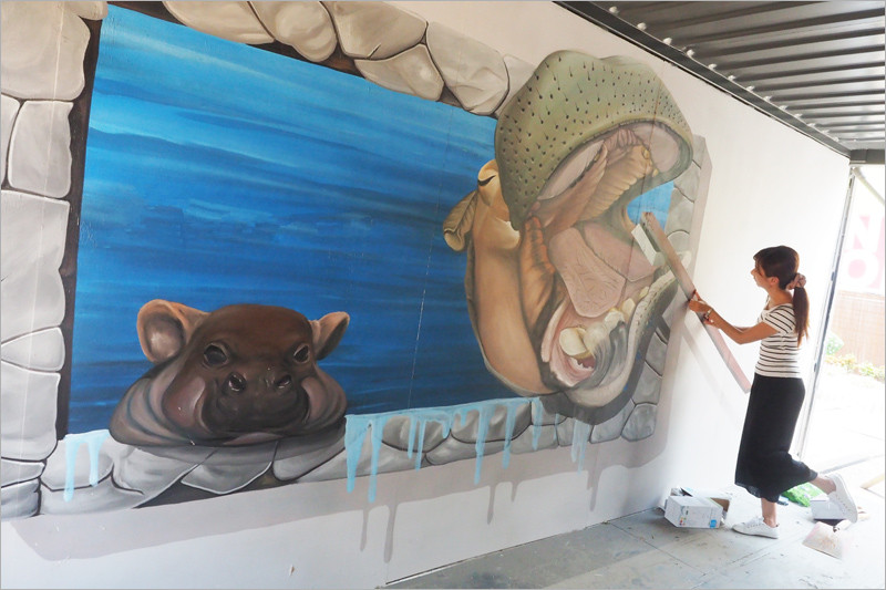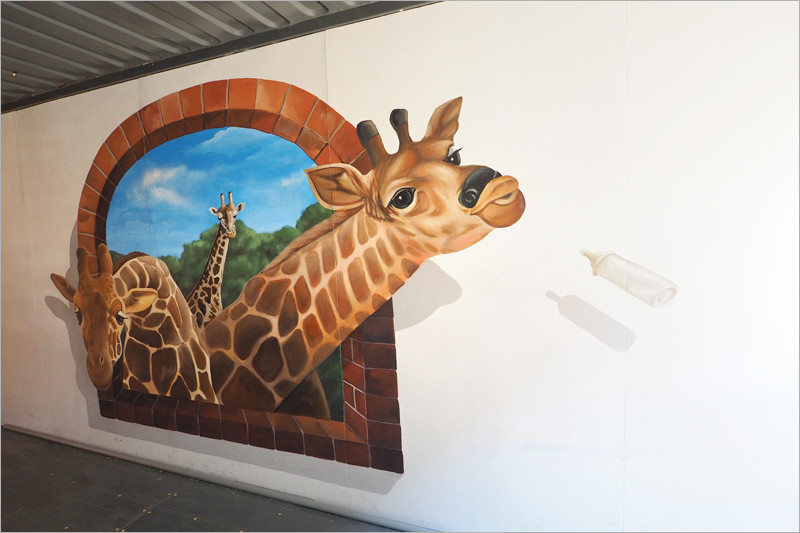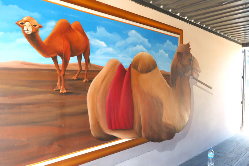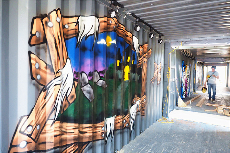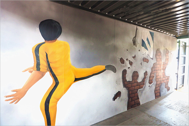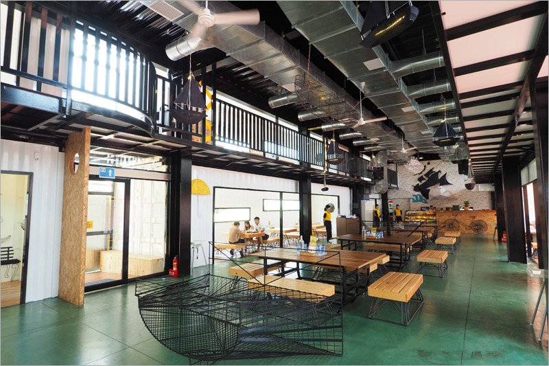整齊的集裝箱環(huán)繞著小區(qū),有的集裝箱內(nèi)部墻面都是3D仿真彩繪,許多游客都忍不住和他們拍照留念,十分有趣;有的是對(duì)外開放的小餐廳,內(nèi)部擺上桌椅等設(shè)施,外面的路人也可以在此享用休息。
