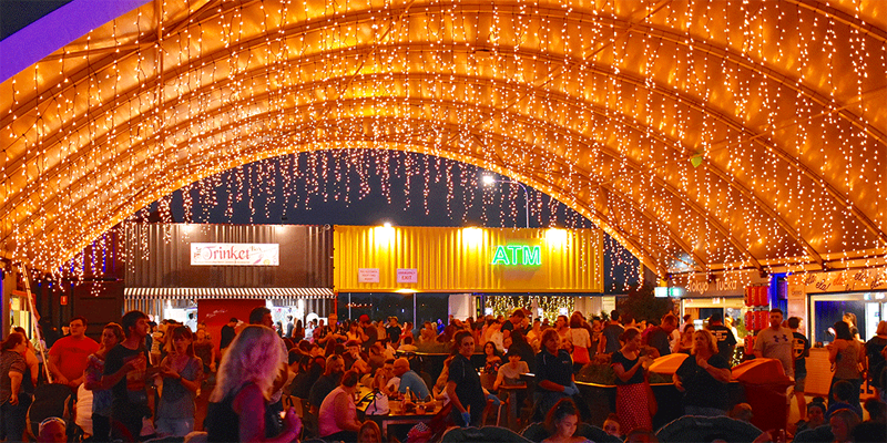 該商業街是一站式的美食、奇幻和有趣體驗的休閑場所,由于該地方原本就是布里斯班河上的集裝箱碼頭,因此在這里實現集裝箱建筑變得十分容易且合適。隨著餐飲和娛樂中心的入駐,該區域已經成為了該市最具活力的場所之一。