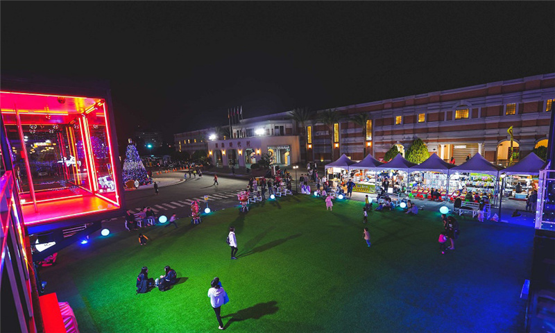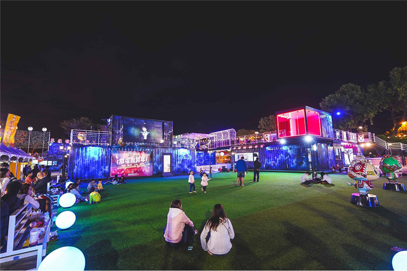 集裝箱市集前還設置了一大片草地,免費開放給游客們。進入玩耍之前需要先脫鞋,草地是人工草皮鋪設因此會更干凈。小朋友們可以在里面盡情跑滾打鬧,家長們則可以席地而坐,或是坐在旁邊的椅子上邊吃美食邊休息,非常放松~