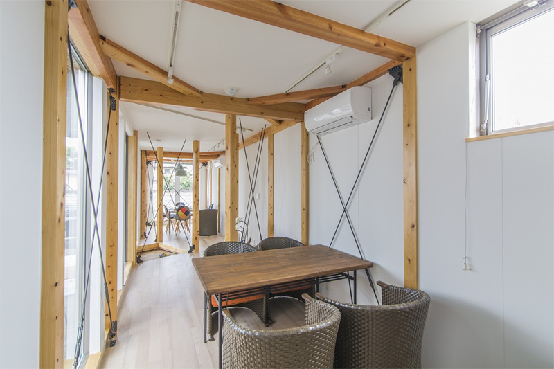 熟悉集裝箱建筑的人都知道,之所以選用集裝箱作為建筑的材料,而不是木箱、膠箱或者鐵箱,是因為集裝箱得天獨厚的穩固結構基礎,可以輕松打造各種不同的建筑,同時保證建筑的穩固性。然而,在集裝箱里加木架這種操作你見過嗎?