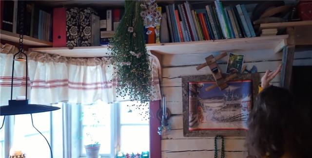 由于書越來越多,夫妻倆只好在餐桌上方又加設了架子,用來進行書籍收納。這間小屋雖然不大,但卻處處充滿了原始生活的理念,而且夫妻倆人已在這里生活了8年,想必是非常喜歡這種生活狀態的吧?