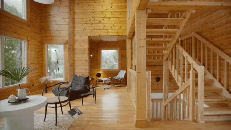 首先,他在全世界范圍內找木頭。他最后選定了芬蘭的赤松,這種木材長在北極圈內,生長速度比較緩慢,質地就會堅硬一些。赤松的保溫性也很好,夏天赤腳站在地板上,會感覺涼快,冬天又會覺得房子里暖暖的。選擇赤松的另一個重要原因是,芬蘭的木材資源雖然豐富,但伐木行業一直遵守著可持續發展的理念。