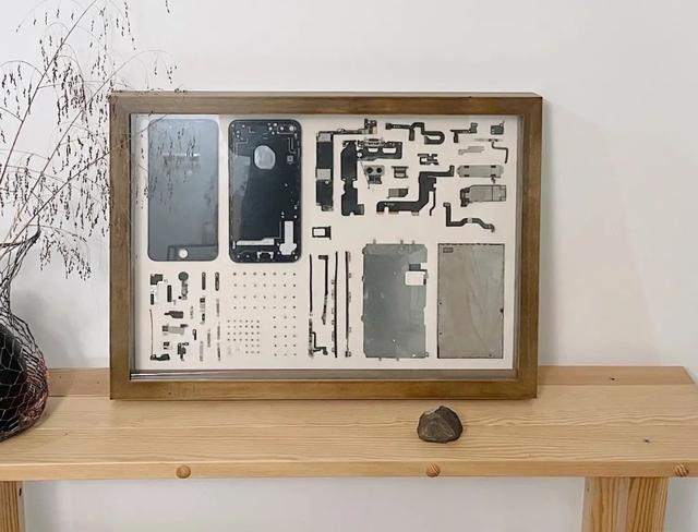 可能是受到曾曾的影響,有一天Frank將用了三年多、舍不得扔的舊手機打開拆解,做成一個標本封存了起來,放在客廳,也體驗了一把“無用之美”。