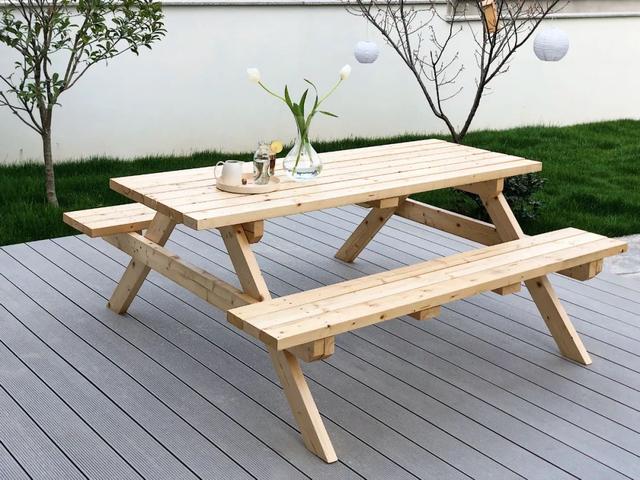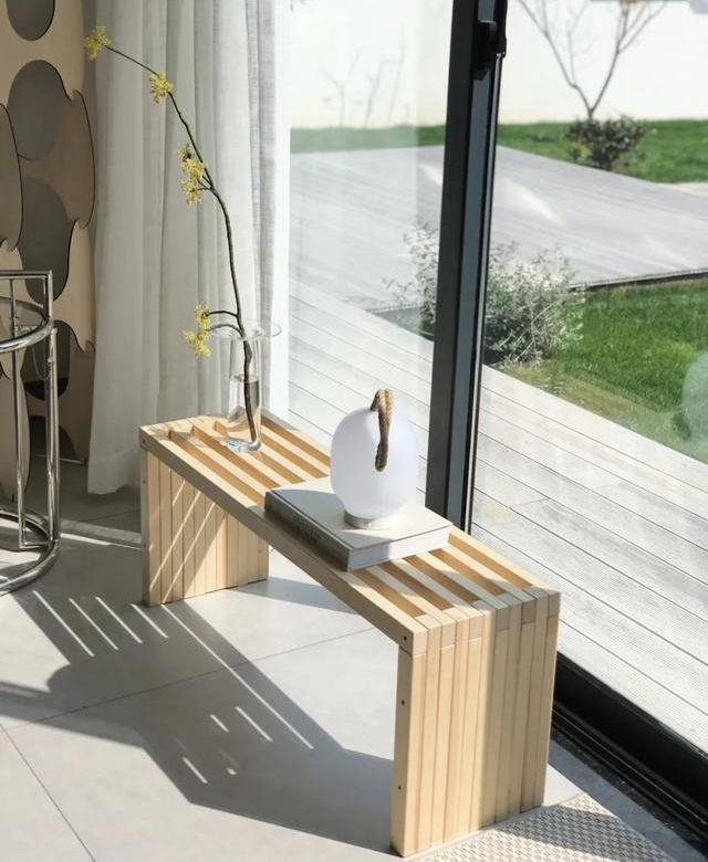 曾曾看到好看的家具,就會拿著圖片來跟Frank商量來執行,然后Frank就將木材切割、打磨、上油漆、組裝起來。茶幾、方凳、電箱、邊桌,還有戶外的那些椅子都是Frank親手做的。