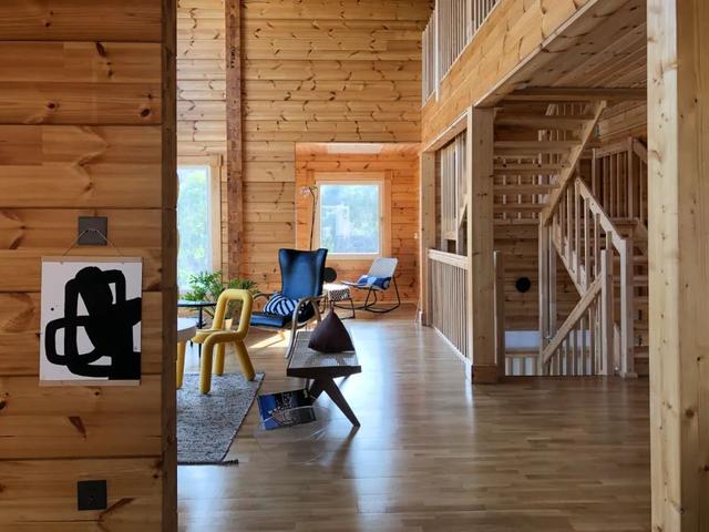 杭州的雨水多,木結構的房子需要遠離潮濕的地面,同時也需要防蟲,所以Frank決定將一樓做成混凝土的樣式。Frank研究了很多芬蘭木屋的建造方法,希望能借鑒一些經驗:“芬蘭有極晝極夜,所以他們在室內的時間很多,會花很多心思在公共空間的設計上。所以我們木屋的結構,臥室也會偏小,但是公共空間會比較開闊。二樓有一個超大的落地窗玻璃,視野很廣闊。”