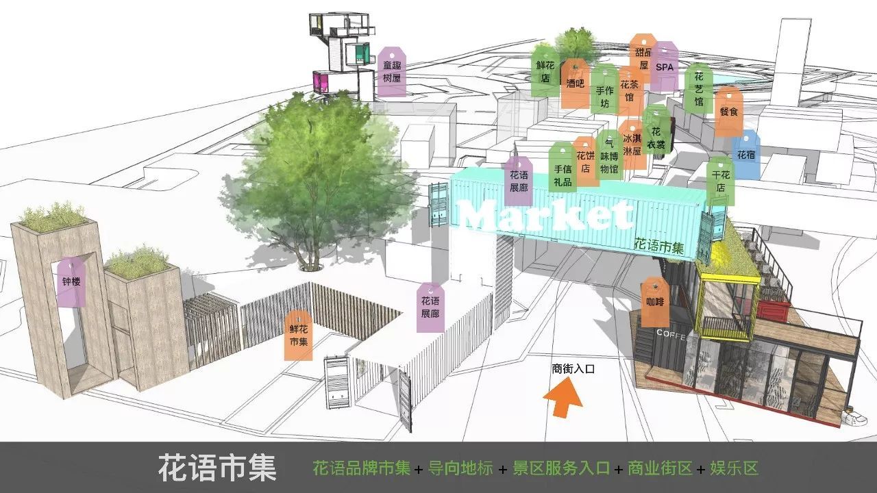 在設計集裝箱商業街的同時,風景盒子非常注重與整個園區的定位、主題進行契合,讓來到此地的游客能夠從精神層面、物質層面、生活層面都能得到滿足。