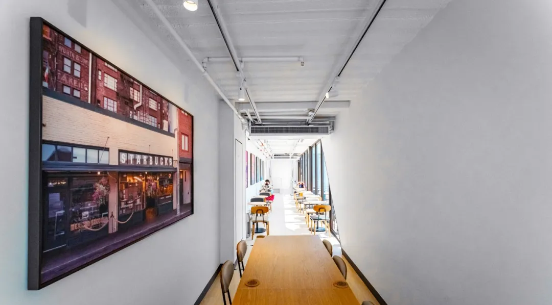 集裝箱的盡頭則是一處很適合開會辦公的小型會議室,墻上掛著歷史上第一家星巴克的照片,你可以一窺歷史與現代之間的文化交流,感受漫長歲月的變遷。除了室內休息區和連廊還有兩個室外露臺,等天氣再涼爽一些坐在這里吹吹風,放下一切煩擾,靜靜地望著藍天白云,獨享這一刻的安逸與靜謐。